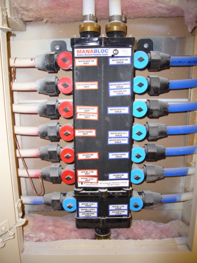 This is a view of a PEX plumbing manifold more common in newer homes.
