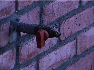 This is a gas line with a shut off valve in the off position. The seller of this home most likely took their outdoor gas grill. I would strongly recommend a new fixture ( grill ) be installed or a gas cap to prevent gas escape should the valve be turned slightly. Always consult a qualified licensed Mississippi home inspector and or a qualified plumber to inspect gas provisions.
